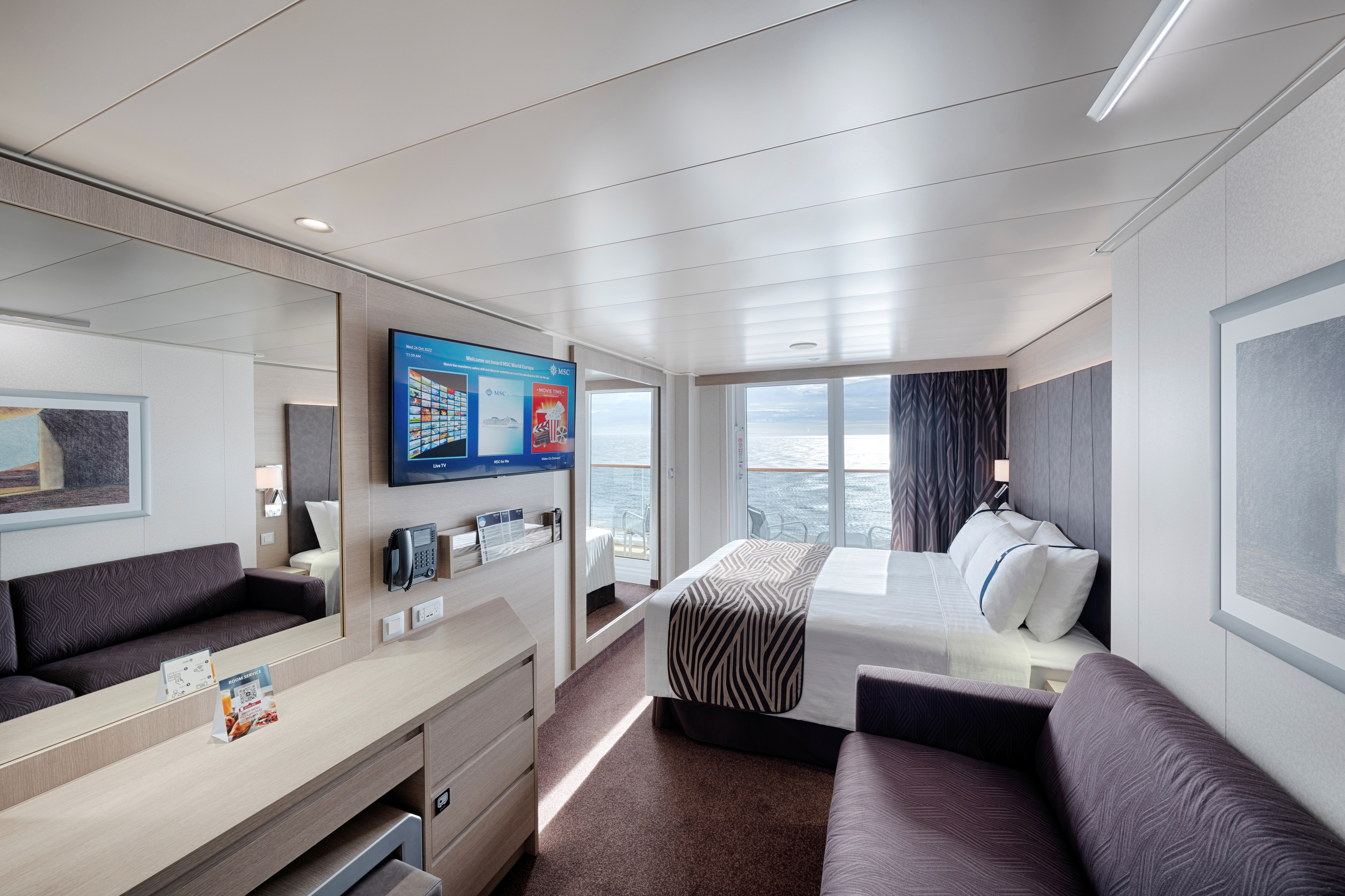 or gelato. Looking for something more adventurous, try your hand at the F1 simulator, bumper cars, or take a swing on the Cliffhanger, the first over water swing at sea. Enjoy multiple complementary restaurants or upgrade your culinary experience and try one of MSC's Specialty Restaurants. A $50 onboard credit, fruit basket, and dipped strawberries are included.